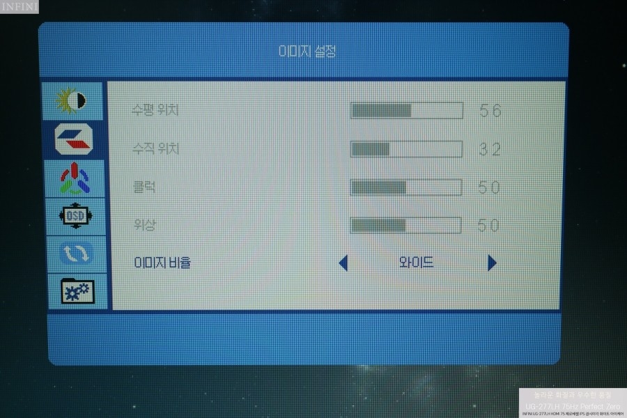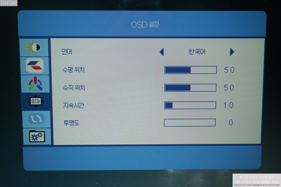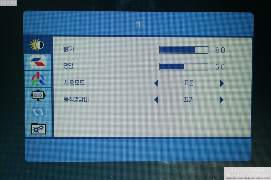 ▲ 유지코리아 INFINI UG-277LH 모니터의 전원을 켜게 되면