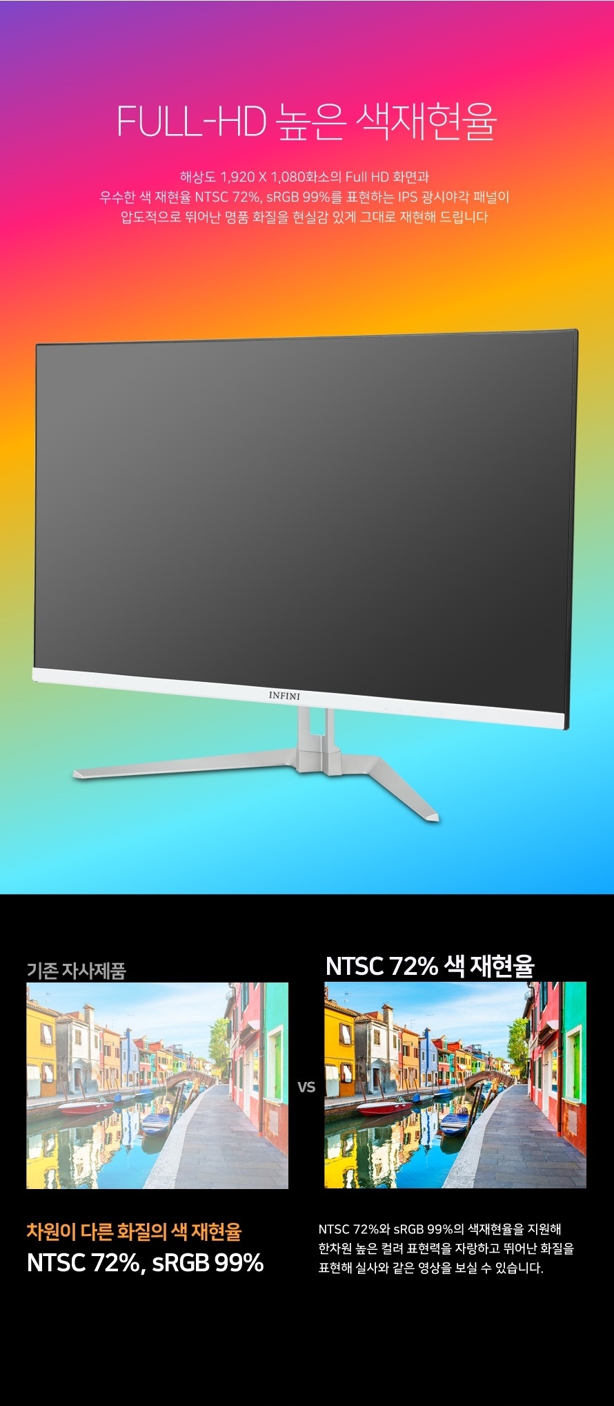 특징을 살펴보자면 높은 색재현율의 IPS 모니터로