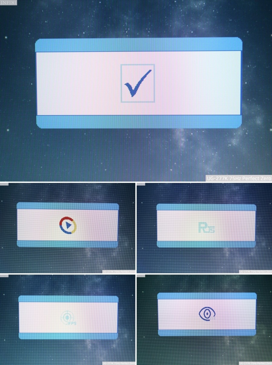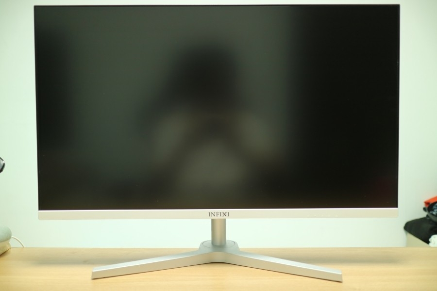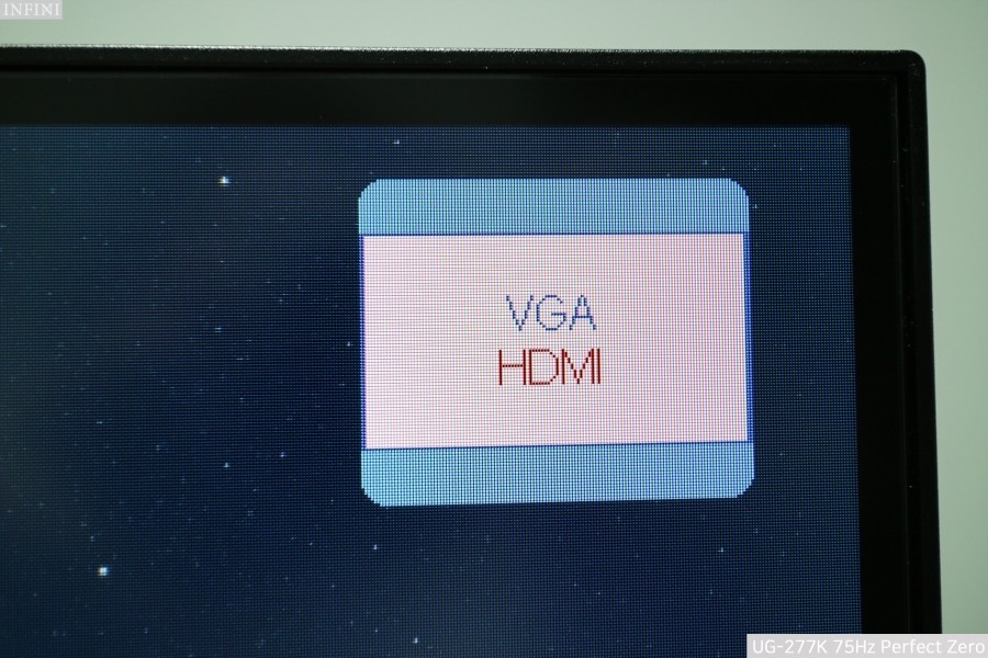 ▲ 유지코리아 INFINI UG-277K 모니터 전면은 하단쪽에 화이트 프레임으로 포인트를 줬으며 하단 가운데 INFINI로고가 자리 잡고 있습니다.