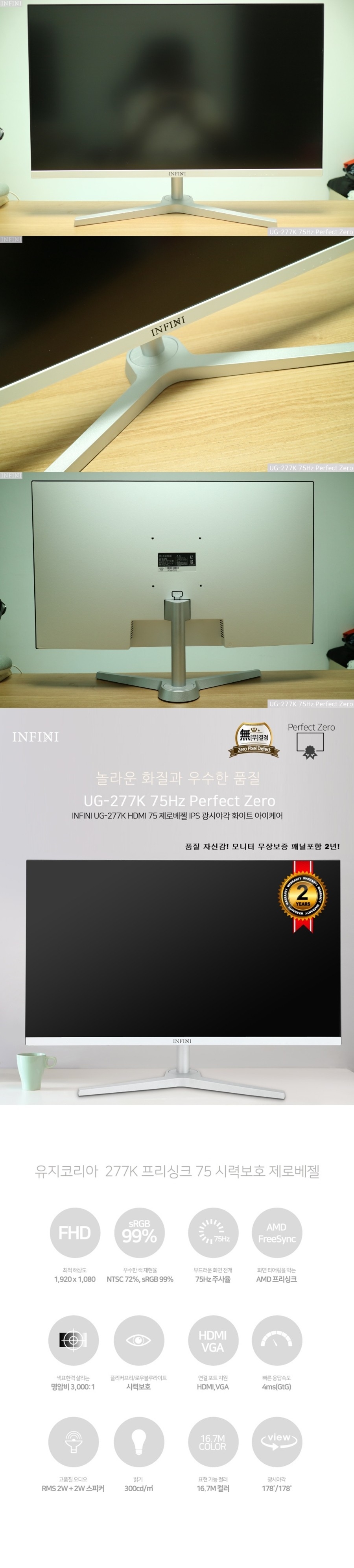 지금까지 유지 코리아 INFINI UG-277K HDMI 75 제로 베젤 IPS 광시야각 화이트 아이케어 모니터를 살펴보았습니다.
