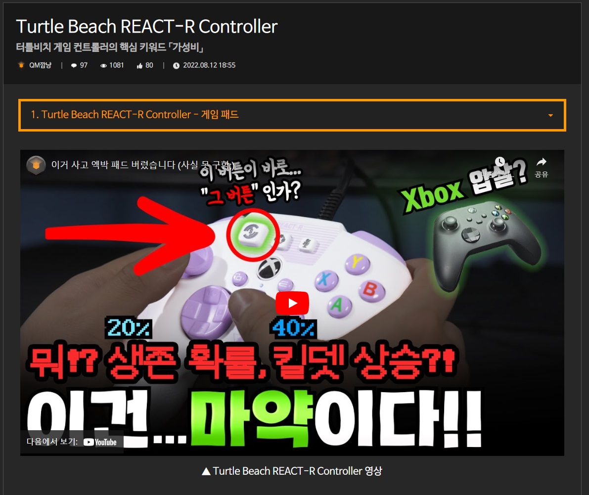 ▲ Turtle Beach REACT-R Controller 영상콘솔과 터틀비치 터틀비치를 설명하는 많…